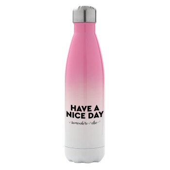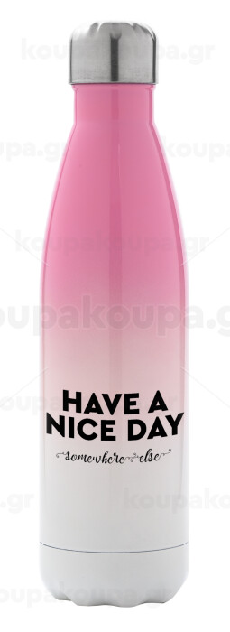 Have a nice day somewhere else, Μεταλλικό παγούρι θερμός Ροζ/Λευκό (Stainless steel), διπλού τοιχώματος, 500ml