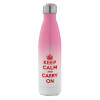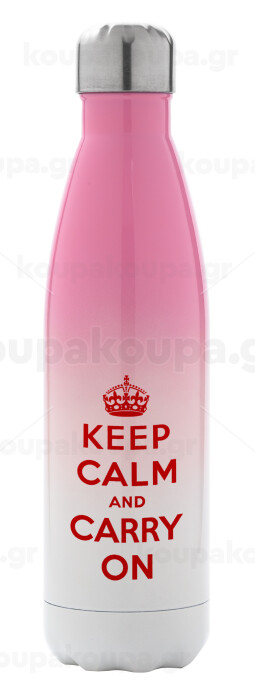 KEEP CALM  and carry on, Μεταλλικό παγούρι θερμός Ροζ/Λευκό (Stainless steel), διπλού τοιχώματος, 500ml