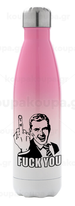 The finger, Μεταλλικό παγούρι θερμός Ροζ/Λευκό (Stainless steel), διπλού τοιχώματος, 500ml