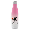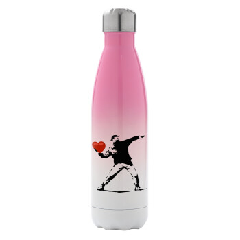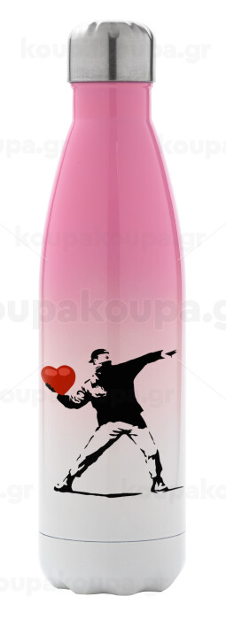 Banksy (The heart thrower), Μεταλλικό παγούρι θερμός Ροζ/Λευκό (Stainless steel), διπλού τοιχώματος, 500ml