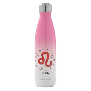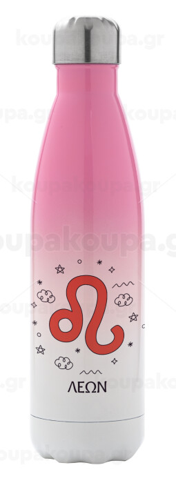 Ζώδια Λέων, Μεταλλικό παγούρι θερμός Ροζ/Λευκό (Stainless steel), διπλού τοιχώματος, 500ml