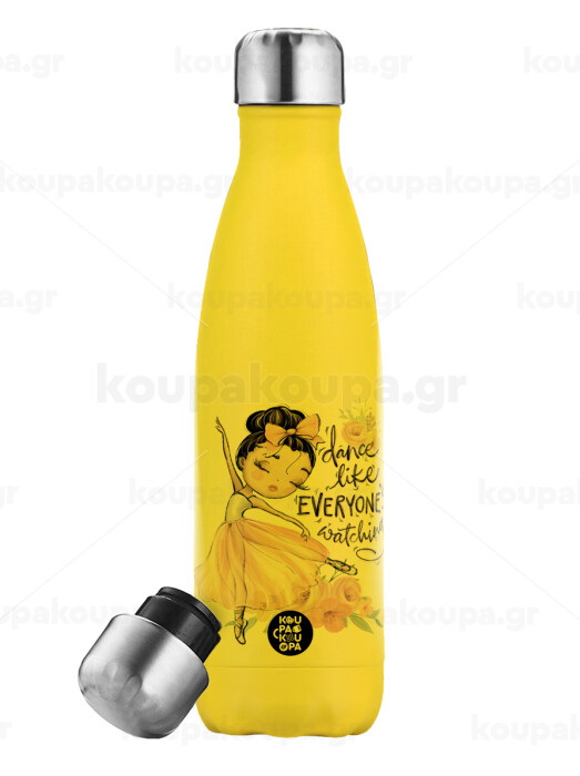Dance Like everyone's watching, Μεταλλικό παγούρι θερμός Κίτρινος (Stainless steel), διπλού τοιχώματος, 500ml