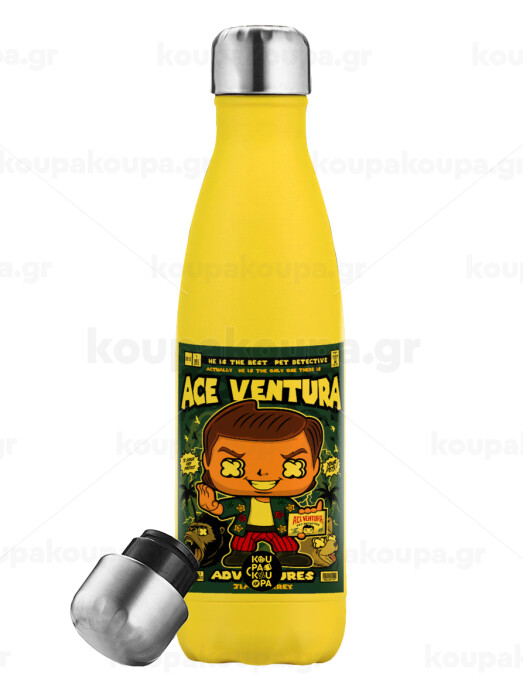 Ace Ventura: Pet Detective, Μεταλλικό παγούρι θερμός Κίτρινος (Stainless steel), διπλού τοιχώματος, 500ml