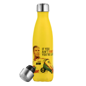 If You Ain't First You're Last Ricky Bobby, Talladega Nights, Μεταλλικό παγούρι θερμός Κίτρινος (Stainless steel), διπλού τοιχώματος, 500ml