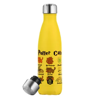 Potter Cats, Μεταλλικό παγούρι θερμός Κίτρινος (Stainless steel), διπλού τοιχώματος, 500ml