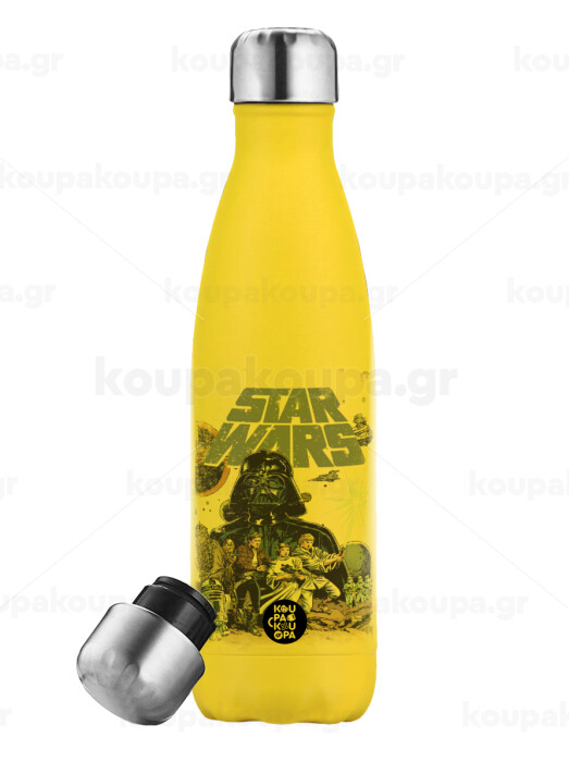 Star Wars, Μεταλλικό παγούρι θερμός Κίτρινος (Stainless steel), διπλού τοιχώματος, 500ml