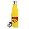 Baymax heart, Μεταλλικό παγούρι θερμός Κίτρινος (Stainless steel), διπλού τοιχώματος, 500ml