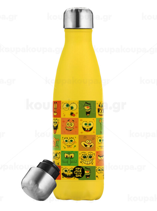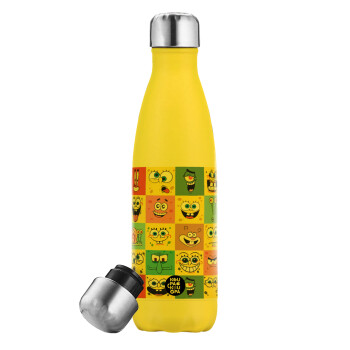 Ο μπομπ και οι φίλοι του, Μεταλλικό παγούρι θερμός Κίτρινος (Stainless steel), διπλού τοιχώματος, 500ml