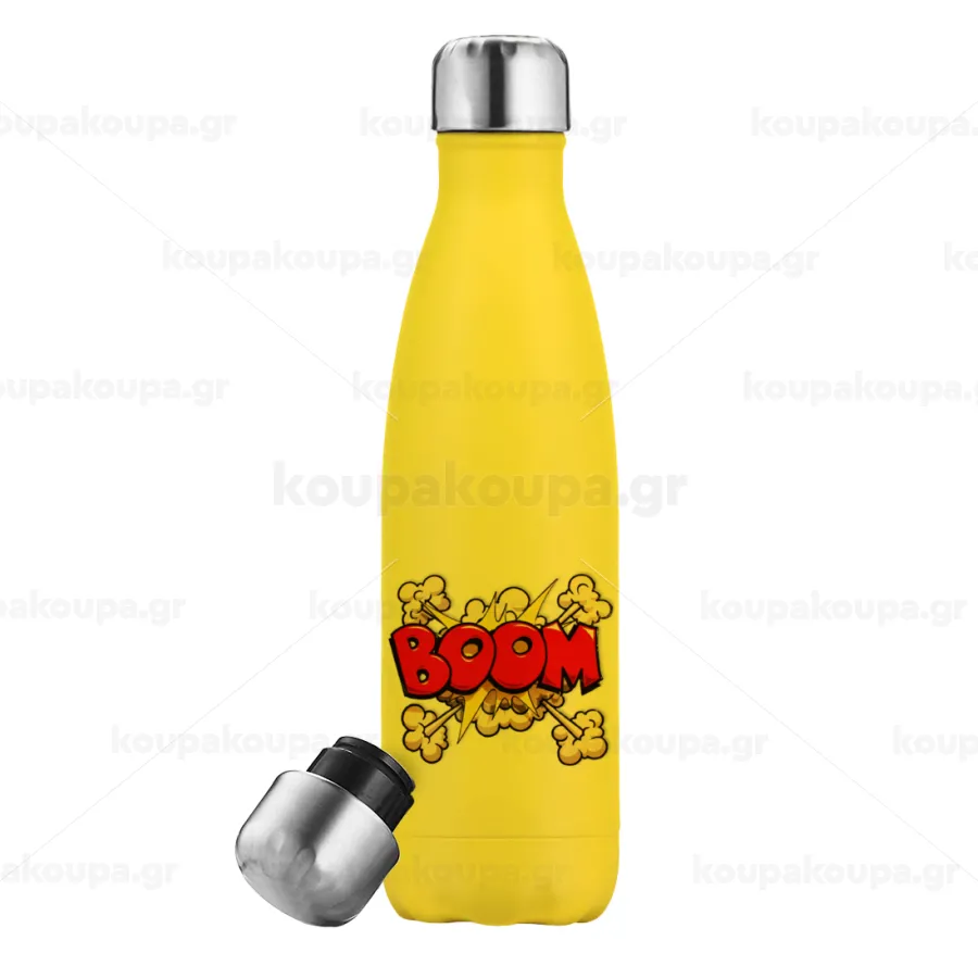 BOOM!!!, Μεταλλικό παγούρι θερμός Κίτρινος (Stainless steel), διπλού τοιχώματος, 500ml