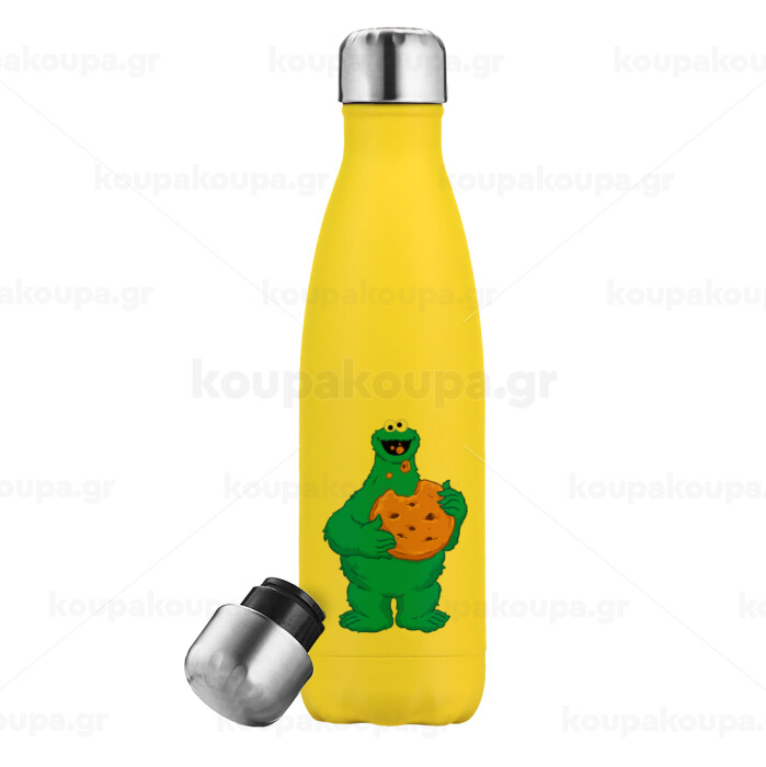 Cookie Monster, Μεταλλικό παγούρι θερμός Κίτρινος (Stainless steel), διπλού τοιχώματος, 500ml