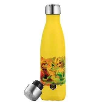 Έλσα & Άννα, Μεταλλικό παγούρι θερμός Κίτρινος (Stainless steel), διπλού τοιχώματος, 500ml