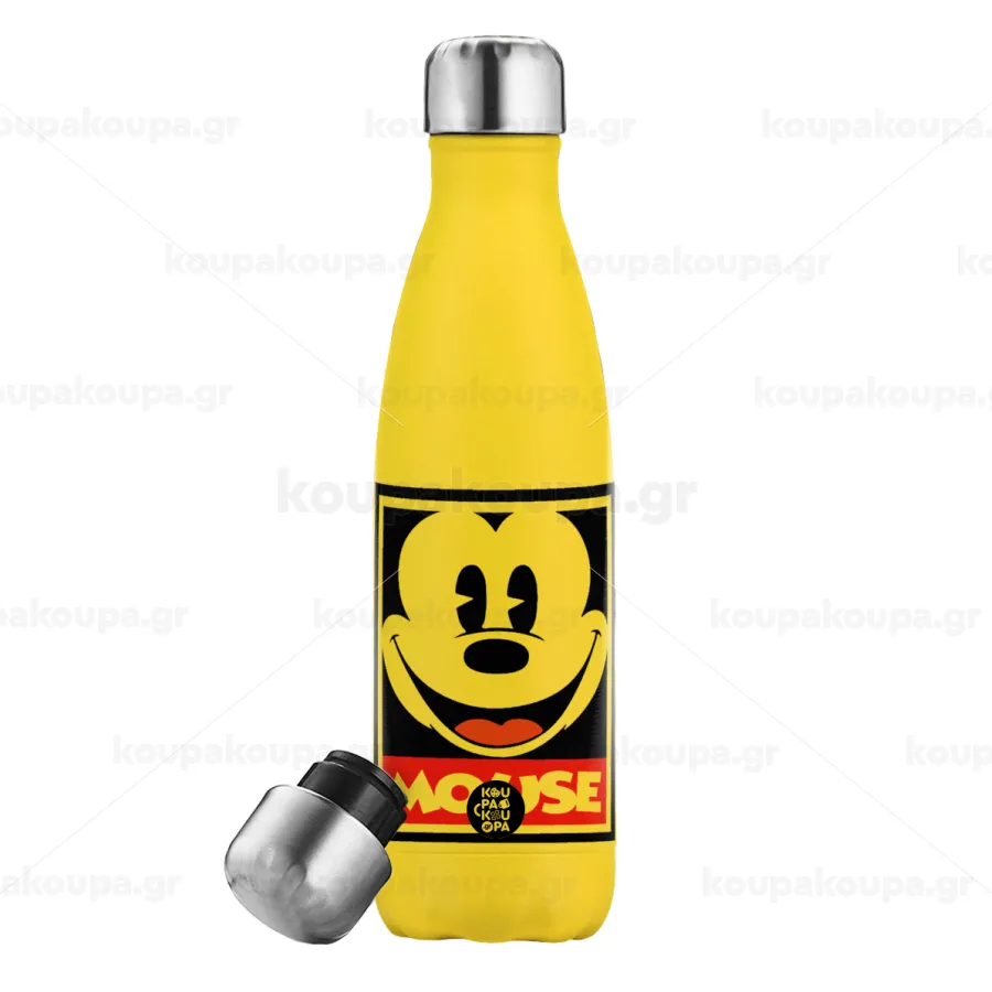 Μίκυ Μάους, Μεταλλικό παγούρι θερμός Κίτρινος (Stainless steel), διπλού τοιχώματος, 500ml