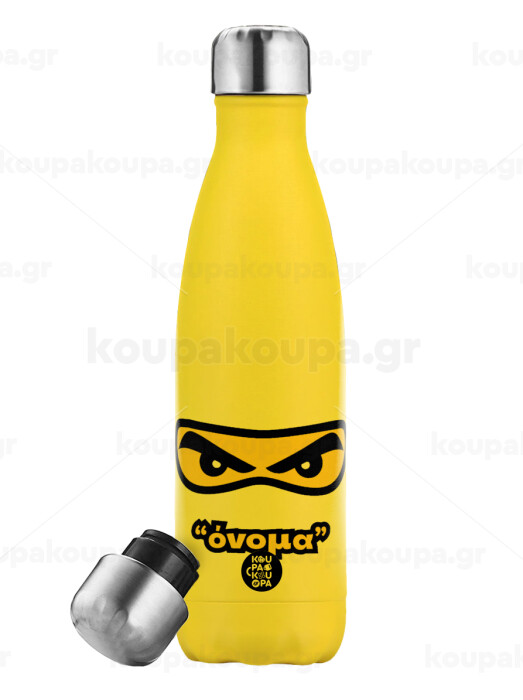 Ninja Eyes με όνομα, Μεταλλικό παγούρι θερμός Κίτρινος (Stainless steel), διπλού τοιχώματος, 500ml