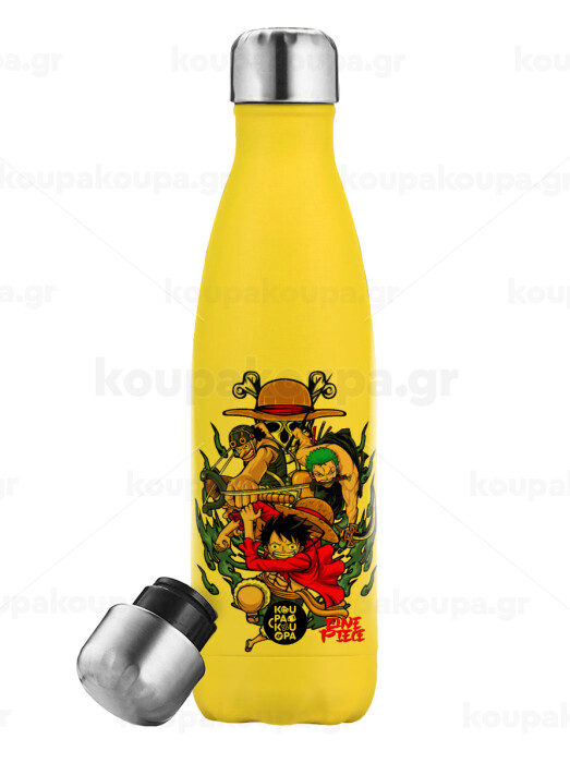 One Piece, Μεταλλικό παγούρι θερμός Κίτρινος (Stainless steel), διπλού τοιχώματος, 500ml
