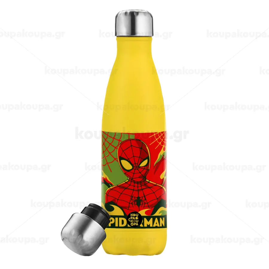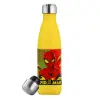 Spiderman kid, Μεταλλικό παγούρι θερμός Κίτρινος (Stainless steel), διπλού τοιχώματος, 500ml