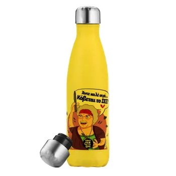 Αντε καλέ, σιγά, κόβεται το σέξ ;, Μεταλλικό παγούρι θερμός Κίτρινος (Stainless steel), διπλού τοιχώματος, 500ml