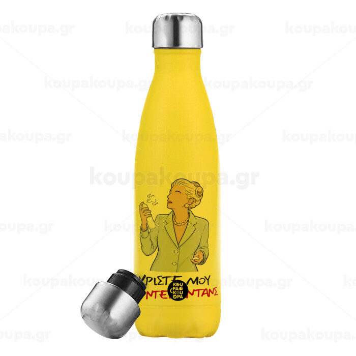 Tι ντεκαντάνς!, Μεταλλικό παγούρι θερμός Κίτρινος (Stainless steel), διπλού τοιχώματος, 500ml