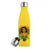 Dua lipa, Μεταλλικό παγούρι θερμός Κίτρινος (Stainless steel), διπλού τοιχώματος, 500ml