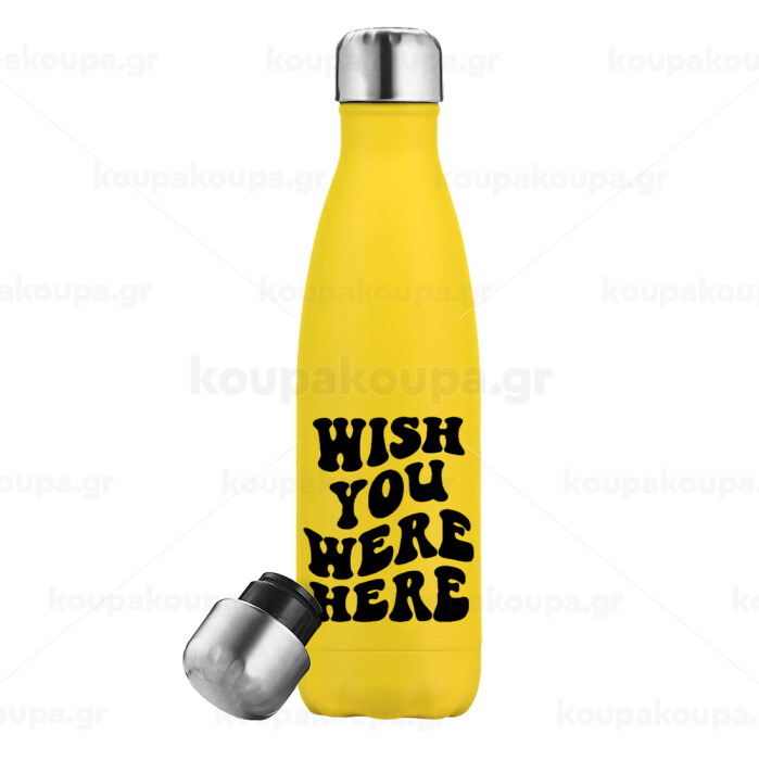 Wish you were here, Μεταλλικό παγούρι θερμός Κίτρινος (Stainless steel), διπλού τοιχώματος, 500ml