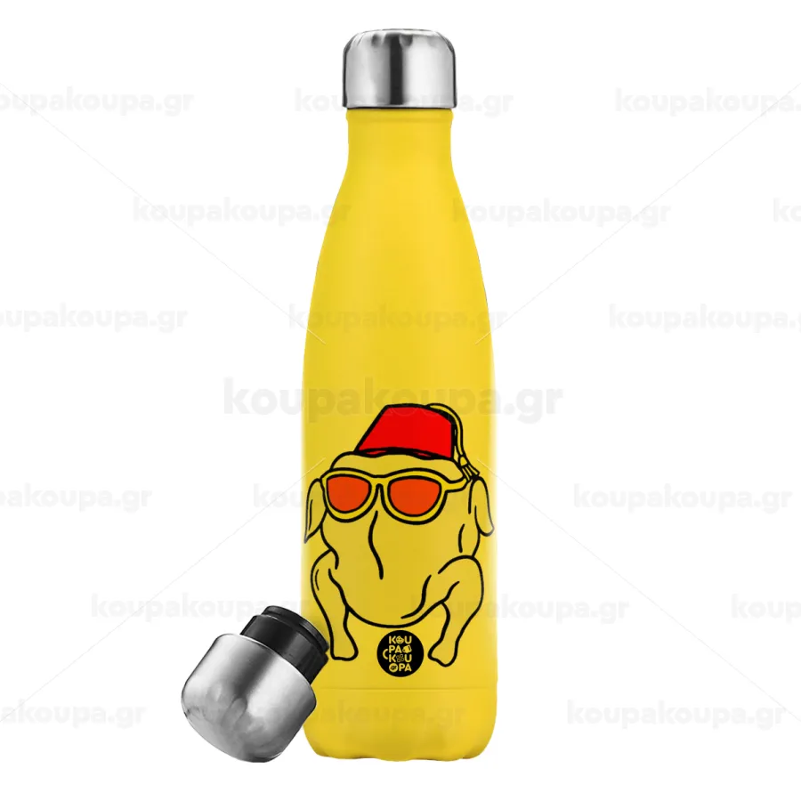 Friends turkey, Μεταλλικό παγούρι θερμός Κίτρινος (Stainless steel), διπλού τοιχώματος, 500ml
