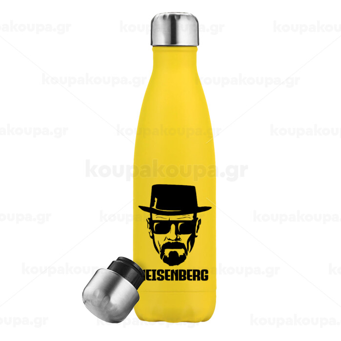 Heisenberg breaking bad, Μεταλλικό παγούρι θερμός Κίτρινος (Stainless steel), διπλού τοιχώματος, 500ml