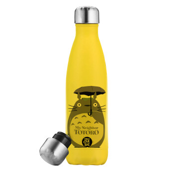 Totoro from My Neighbor Totoro, Μεταλλικό παγούρι θερμός Κίτρινος (Stainless steel), διπλού τοιχώματος, 500ml