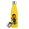 Lionel Messi drawing, Μεταλλικό παγούρι θερμός Κίτρινος (Stainless steel), διπλού τοιχώματος, 500ml