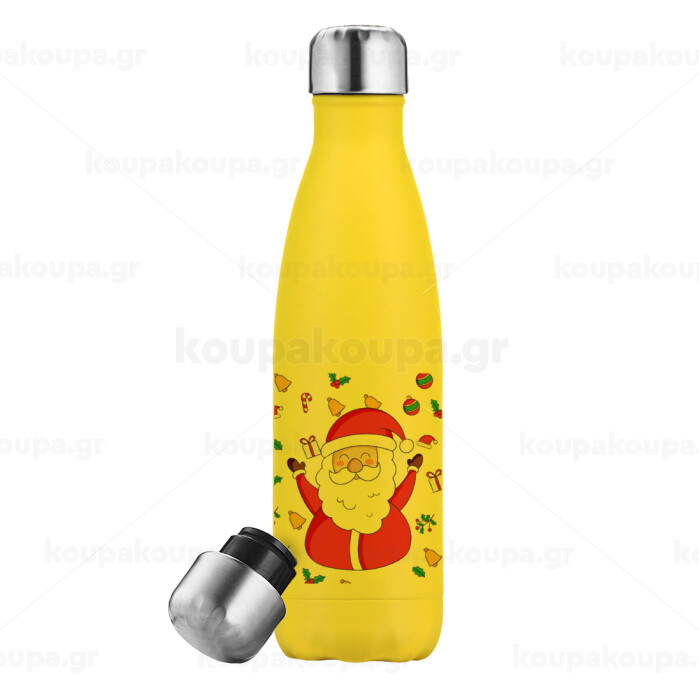 Santa Claus gifts, Μεταλλικό παγούρι θερμός Κίτρινος (Stainless steel), διπλού τοιχώματος, 500ml
