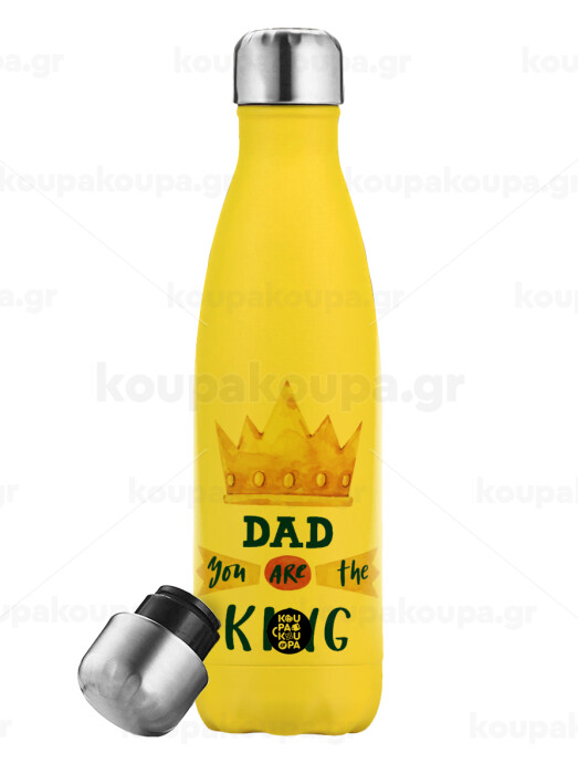 Dad you are the King, Μεταλλικό παγούρι θερμός Κίτρινος (Stainless steel), διπλού τοιχώματος, 500ml