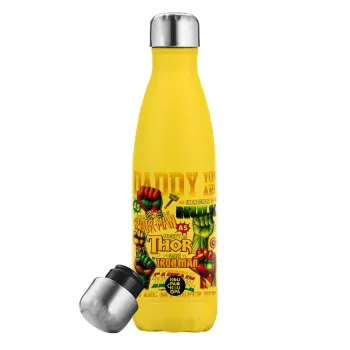 Daddy You Are my Hero, Μεταλλικό παγούρι θερμός Κίτρινος (Stainless steel), διπλού τοιχώματος, 500ml
