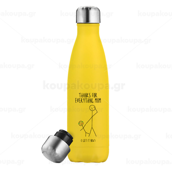 Thanks for everything mom, Μεταλλικό παγούρι θερμός Κίτρινος (Stainless steel), διπλού τοιχώματος, 500ml