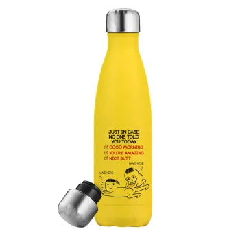 Just in case no one told you today..., Μεταλλικό παγούρι θερμός Κίτρινος (Stainless steel), διπλού τοιχώματος, 500ml