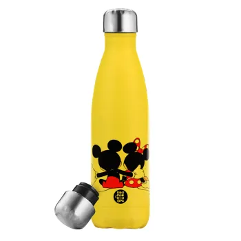 mickey and minnie hags, Μεταλλικό παγούρι θερμός Κίτρινος (Stainless steel), διπλού τοιχώματος, 500ml
