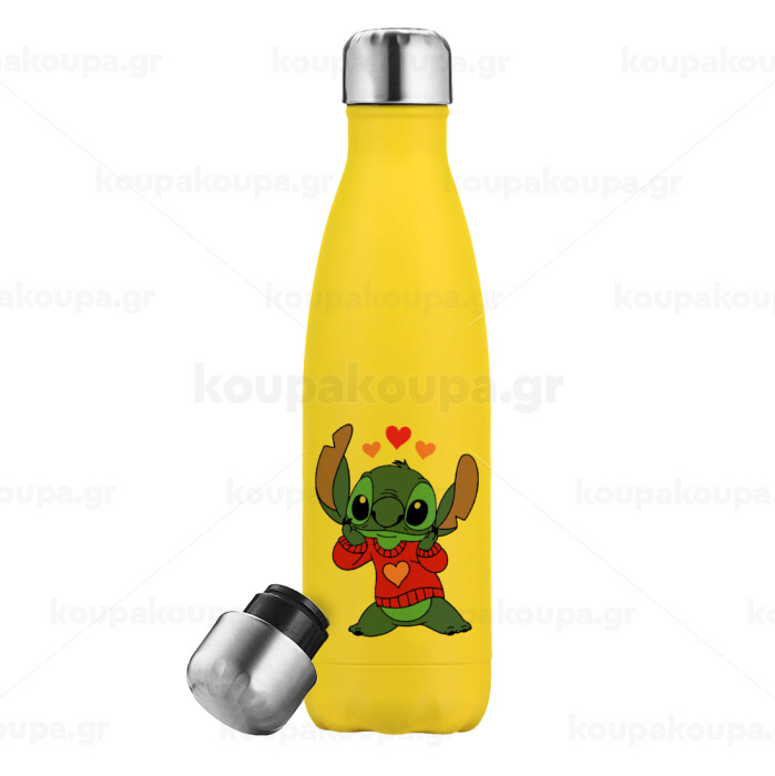 Stitch heart, Μεταλλικό παγούρι θερμός Κίτρινος (Stainless steel), διπλού τοιχώματος, 500ml