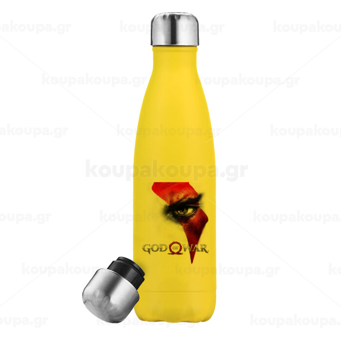 God of war Stratos, Μεταλλικό παγούρι θερμός Κίτρινος (Stainless steel), διπλού τοιχώματος, 500ml