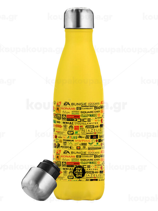 Video Game Studio Logos, Μεταλλικό παγούρι θερμός Κίτρινος (Stainless steel), διπλού τοιχώματος, 500ml
