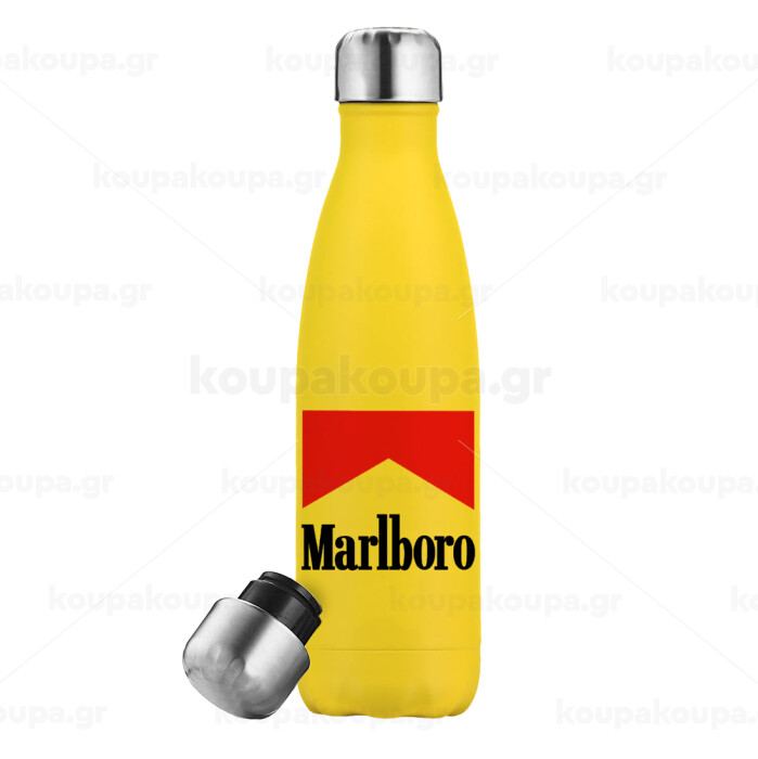 Marlboro, Μεταλλικό παγούρι θερμός Κίτρινος (Stainless steel), διπλού τοιχώματος, 500ml