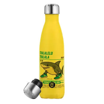 Tralalero Tralala, Μεταλλικό παγούρι θερμός Κίτρινος (Stainless steel), διπλού τοιχώματος, 500ml