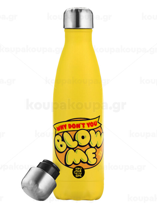 Why Don't You Blow Me Funny, Μεταλλικό παγούρι θερμός Κίτρινος (Stainless steel), διπλού τοιχώματος, 500ml