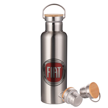 FIAT, Μεταλλικό παγούρι θερμός (Stainless steel) Ασημένιο με ξύλινο καπακι (bamboo), διπλού τοιχώματος, 750ml