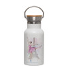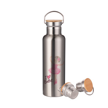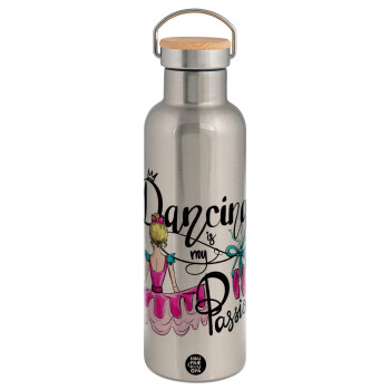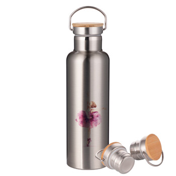 Ballerina in Paris, Μεταλλικό παγούρι θερμός (Stainless steel) Ασημένιο με ξύλινο καπακι (bamboo), διπλού τοιχώματος, 750ml
