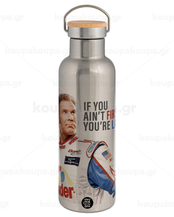 If You Ain't First You're Last Ricky Bobby, Talladega Nights, Μεταλλικό παγούρι θερμός (Stainless steel) Ασημένιο με ξύλινο καπακι (bamboo), διπλού τοιχώματος, 750ml