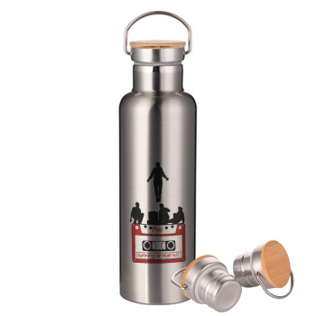 Running up that hill, Stranger Things, Μεταλλικό παγούρι θερμός (Stainless steel) Ασημένιο με ξύλινο καπακι (bamboo), διπλού τοιχώματος, 750ml