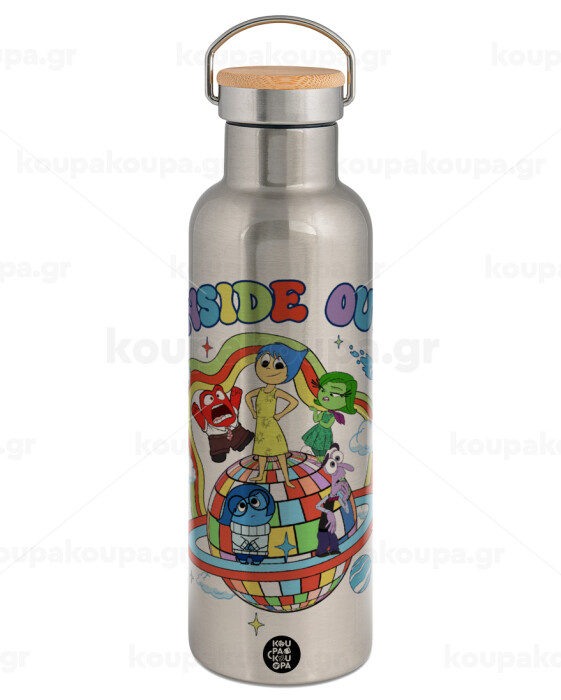 Inside Out, Μεταλλικό παγούρι θερμός (Stainless steel) Ασημένιο με ξύλινο καπακι (bamboo), διπλού τοιχώματος, 750ml