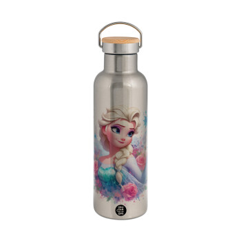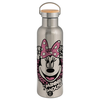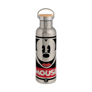 Spiderman upside down, Μεταλλικό παγούρι θερμός (Stainless steel) Ασημένιο με ξύλινο καπακι (bamboo), διπλού τοιχώματος, 750ml