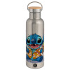 Stitch Ice cream, Μεταλλικό παγούρι θερμός (Stainless steel) Ασημένιο με ξύλινο καπακι (bamboo), διπλού τοιχώματος, 750ml