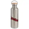 Judas Priest, Μεταλλικό παγούρι θερμός (Stainless steel) Ασημένιο με ξύλινο καπακι (bamboo), διπλού τοιχώματος, 750ml