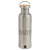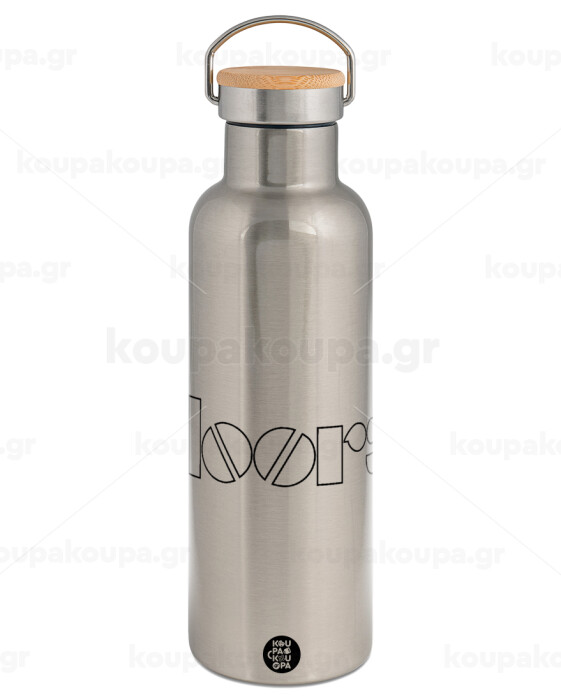 The Doors, Μεταλλικό παγούρι θερμός (Stainless steel) Ασημένιο με ξύλινο καπακι (bamboo), διπλού τοιχώματος, 750ml
