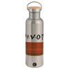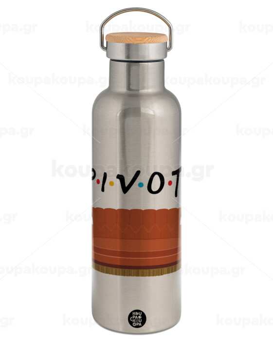 Friends Pivot, Μεταλλικό παγούρι θερμός (Stainless steel) Ασημένιο με ξύλινο καπακι (bamboo), διπλού τοιχώματος, 750ml
