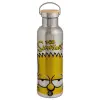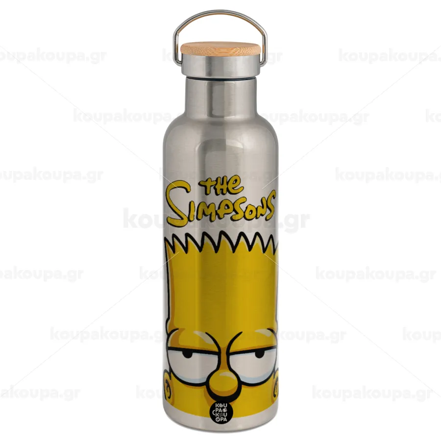 The Simpsons Bart, Μεταλλικό παγούρι θερμός (Stainless steel) Ασημένιο με ξύλινο καπακι (bamboo), διπλού τοιχώματος, 750ml